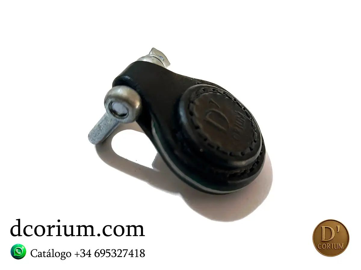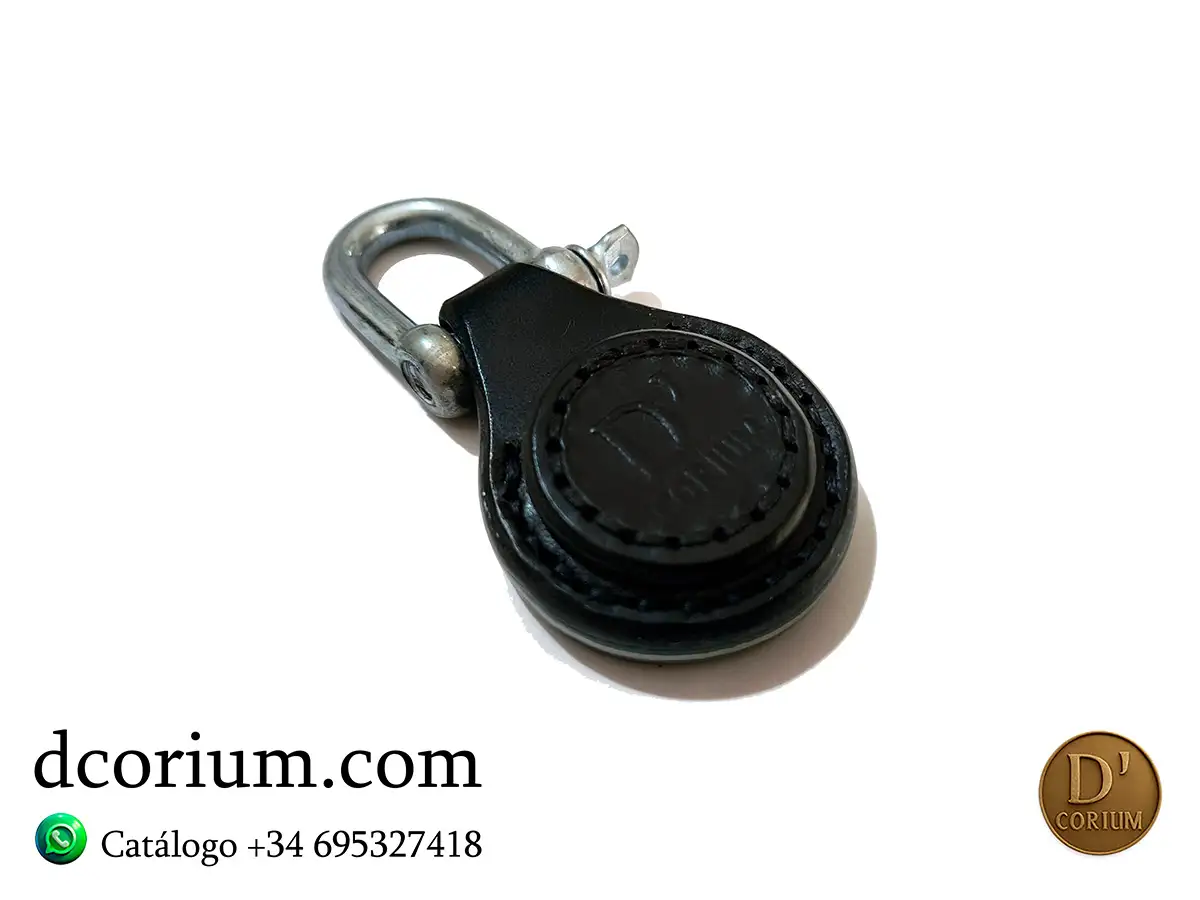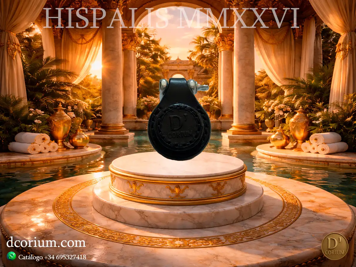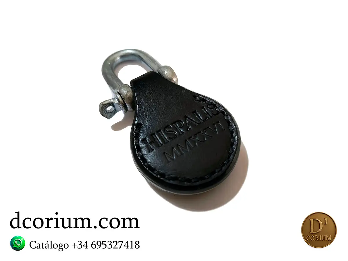 El color negro siempre es un color elegante y sofisticado. Esta pieza está realizada en cuero negro de un grosor especial, muy fuerte y por lo tanto duradero. Tiene la bandera de Andalucía entre las capas que lo componen. Las medidas de este llavero son de unos 4 cm de diámetro por algo más de 1 cm de grosor. Los bordes están convenientemente pulidos y brillantes. Cosido a mano con hilo encerado color negro de 0,6 mm. En la parte anterior tiene el logo de D´Corium y en la posterior el nombre de la colección a la que pertenece: HISPALIS MMXXVI. Puede llevar mosquetón o una argolla dependiendo de la disponibilidad.